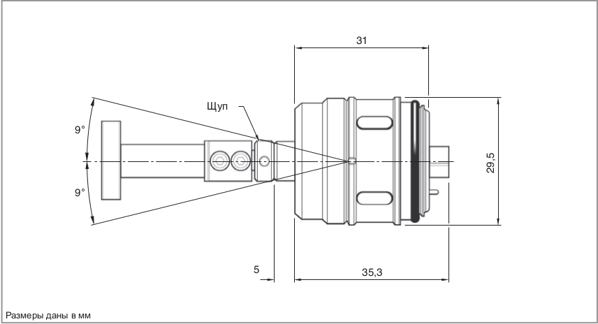 • Защита датчика при выходе за пределы перебега с помощью ломкого предохранителя щупа.