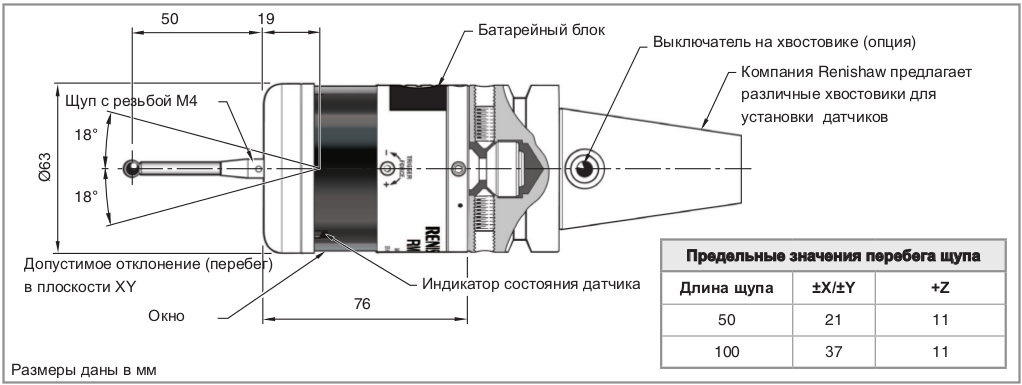 | Основное назначение | Измерение размеров деталей и настройка на технологические операции на многоцелевых станках и обрабатывающих центрах, включая портальные. | ||